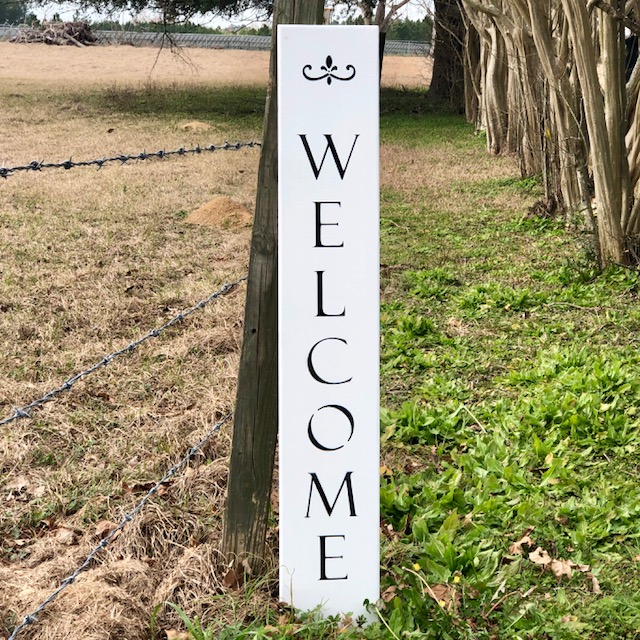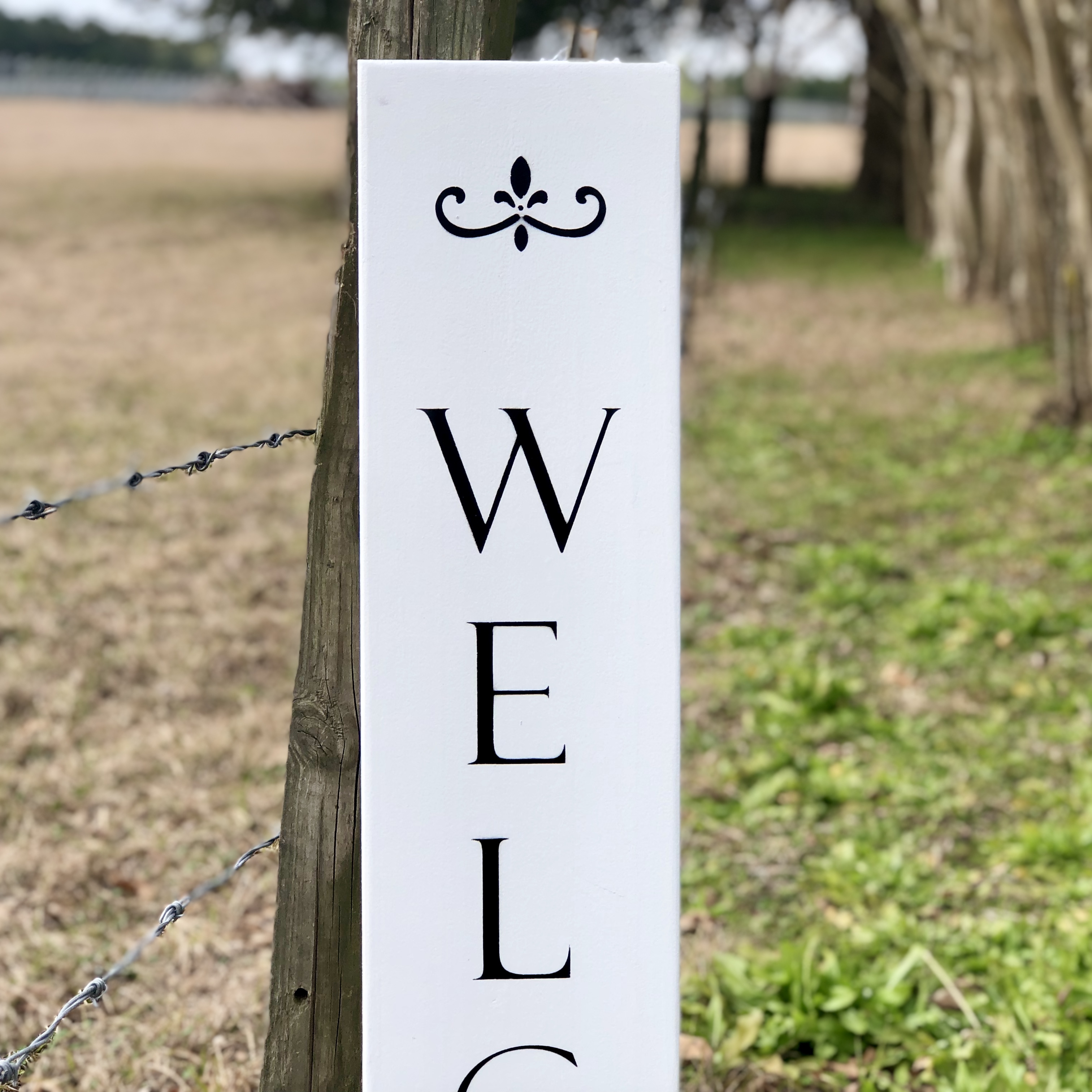 Add style to the entrance of your home with this beautifully crafted handmade welcome sign! Designed for exterior use.