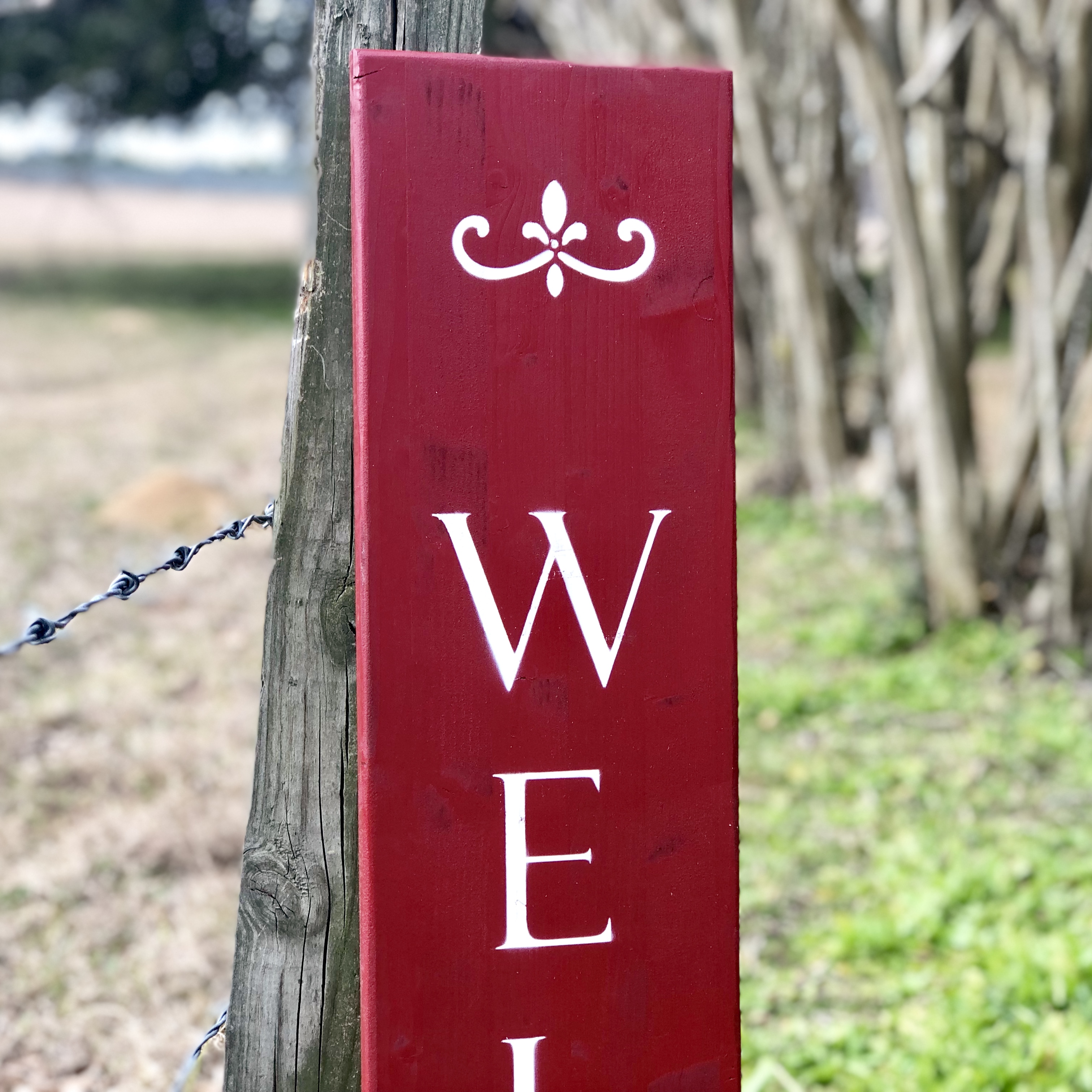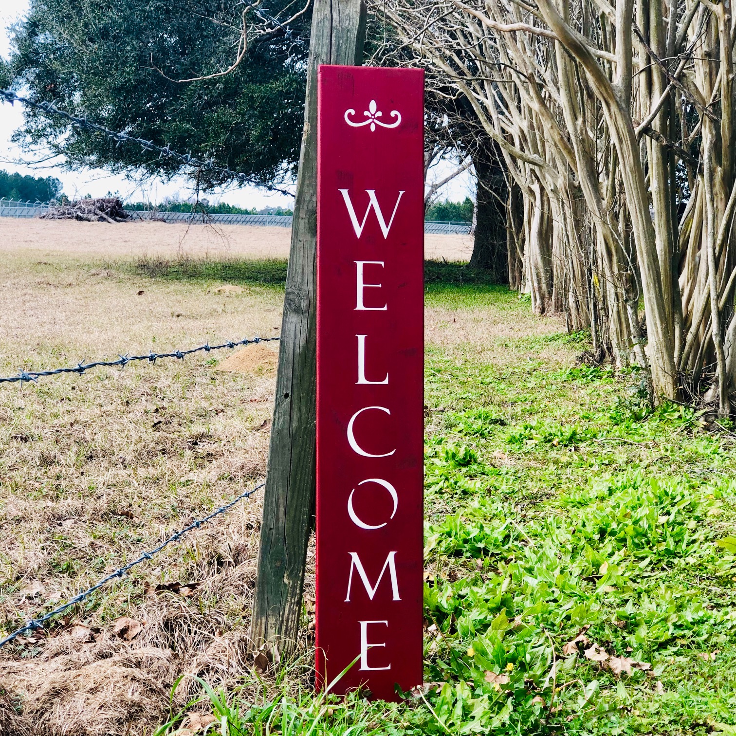 Add style to the entrance of your home with this beautifully crafted handmade welcome sign! Designed for exterior use.